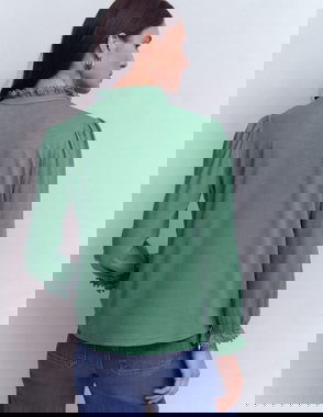 Emily Pom Detail Ruffle Shirt-Deep Jungle