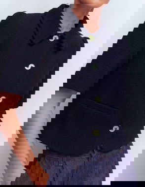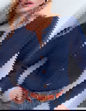 Davina Puff Sleeve Cardigan-Blue, Nep
