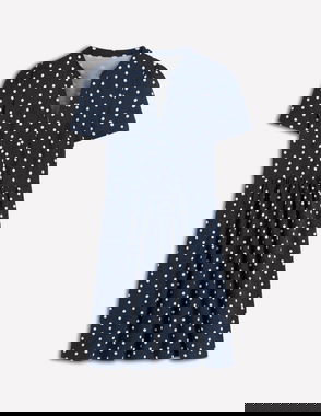 Naomi Short Jersey Dress-French Navy, Painted Dot
