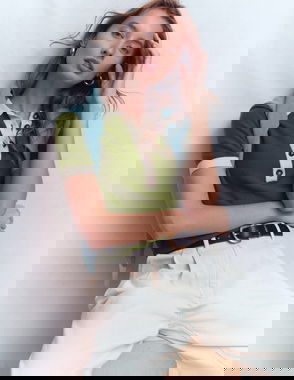 Pleat Sleeve T-shirt-Beaucoup Blue And Ivory Stripe