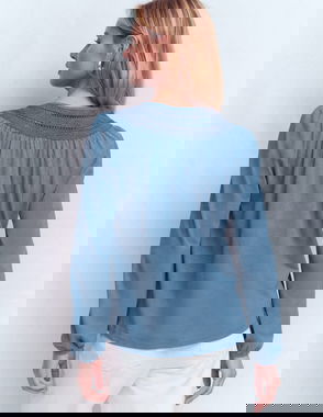 Rhea Trim Insert Broderie Top-White Floral Broderie