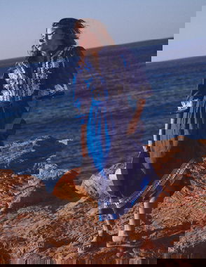 Ava Linen Blend Midi Dress-Blue Embroidery