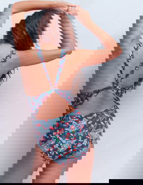 Mykonos Deep V Swimsuit-Dark Blue, Botanical Trail