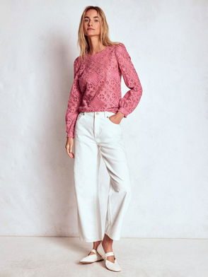 Savannah Cotton Broderie Long Sleeve Collar Blouse