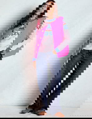 Zip Up Jacquard Cardigan-Poppy Red Reindeer