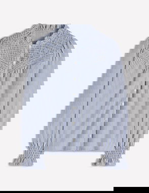 Smocked Yoke Jersey Shirt-Forever Blue And Ivory Stripe