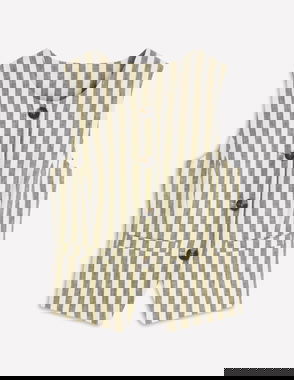 Linen Scoop Neck Waistcoat-Olive, Ivory Stripe