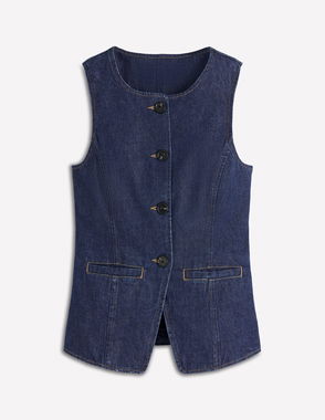 Denim Waist Coat-Indigo Denim