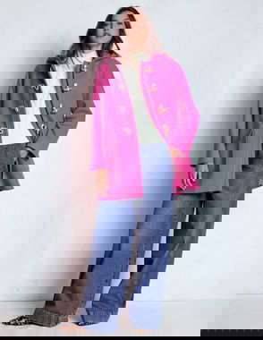 2-in-1 Padded Coat-Multi Woodblock Flower