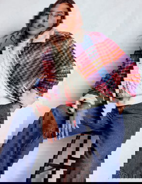 Cocoon Wool Coat-Brown, Teal And Pink Check
