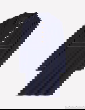 Fiona Zip Front Long Sleeve Checkered Flare Midi Dress