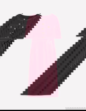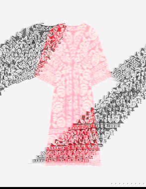 Nell Kimono Midi Jersey Dress-Bright Cherry, Ornate Floret