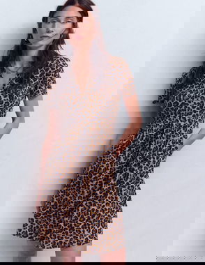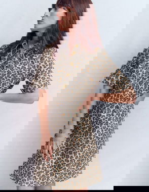 Naomi Short Jersey Dress-Camel, Cheetah Pop