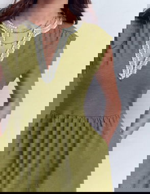 Carmen Linen Short Dress-Multi, Ornamental Trellis