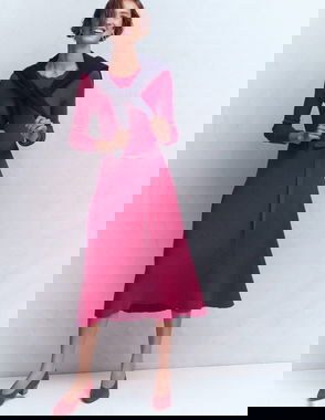 Contrast Ponte Midi Dress, Navy