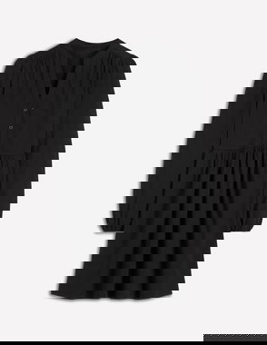 Kate Velvet Puff Sleeve Button Neck Midi Shirt Dress