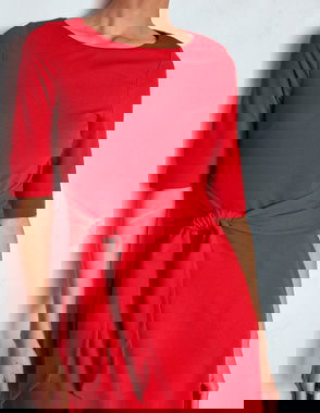 Scallop Detail Jersey Dress-Navy