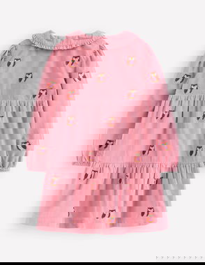 Minna Collared Woven Dress-Pink Owl Embroidery