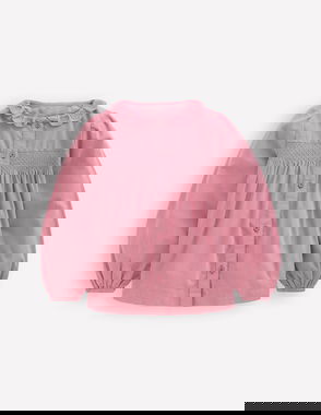 Scalloped Collar Smocked Shirt-Pink Cord