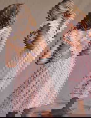 Flutter Sleeve Twirly Dress-Multi Woodblock Floral