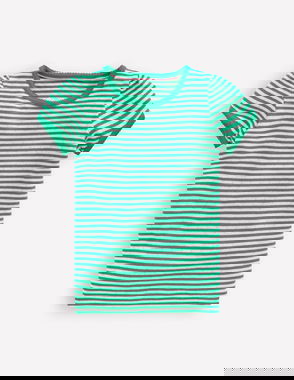 Short Sleeve Pointelle Top-Green/Ivory Stripe