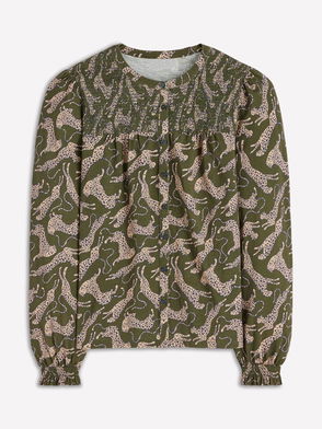 Elsa Cheetahs Smocked Yoke Jersey Top, Green