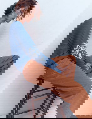Lucy Relaxed Cotton Jumper-Ivory, Brown