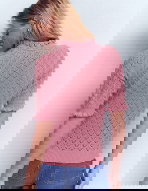 Valeria Crochet Trim Jumper-Rose Pink, Embroidery