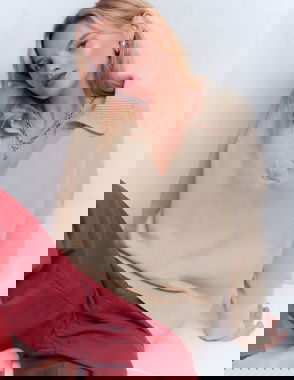 Lucy Chunky Cotton Jumper-Pink/ Red