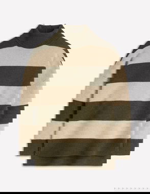Polly Merino Roll Neck Jumper-Marsh, Linen Stripe