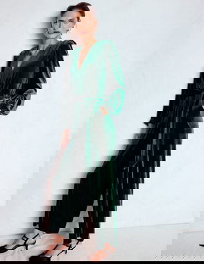 Jersey Velvet Wrap Jumpsuit-Emerald Night
