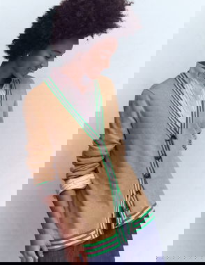 Lucy Stripe Cardigan, Navy/Camel Melange