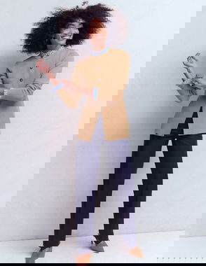 V Neck Longline Cardigan-Camel Melange