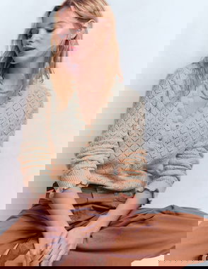 Jacquard Knitted Shacket-Warm Ivory, Novelty