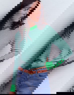 Grace Colour Block Jumper-Cloudy Jade Blue