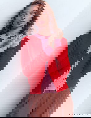 Grace Colour Block Cardigan-Bright Cherry