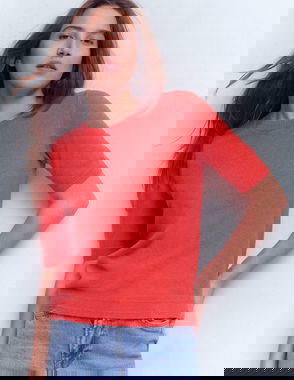 Emilia Cotton Crew Jumper-Salsa Red