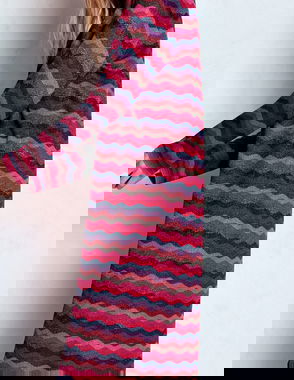 Marion Stripe Pure Wool Cardigan, Umber/Brilliant Pink