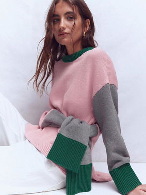 Lucy Colour Block Crew Neck Jumper, Pink/Multi