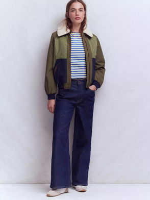 Lucy Stripe Oversized Jumper, Almond Milk/Blue