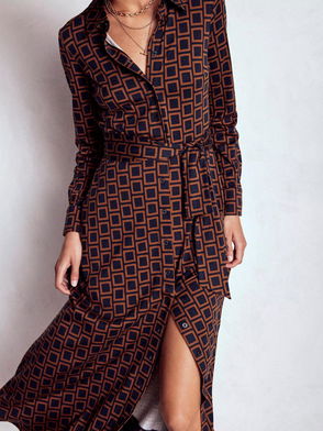 Spot Tie Neck Midi Dress