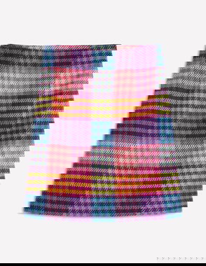 Josephine Check Wool Rich Kilt Skirt, Navy/Multi