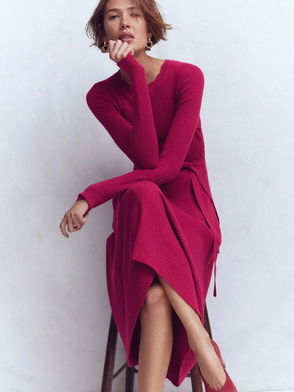 Kate Velvet Puff Sleeve Button Neck Midi Shirt Dress