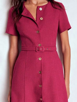 Button Detail Mix Dress, Crimson Red