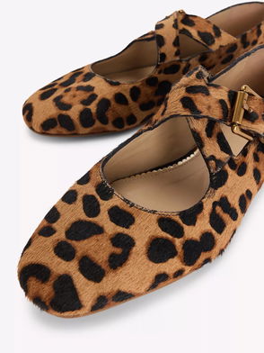 Cross Strap Leopard Print Mary Jane Ballerina Pumps, Brown/Multi