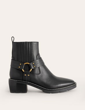 Block Heel Leather Ankle Boots-Black And Camel Spot