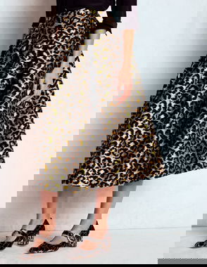 Anna Animal Print Tulle Midi Skirt, Brown/Multi
