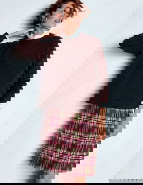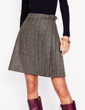 Josephine Check Wool Rich Kilt Skirt, Navy/Multi