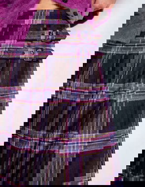 Josephine Wool Kilt Skirt-Brown, Teal & Pink Check