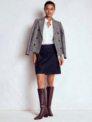 Josephine Check Wool Rich Kilt Skirt, Navy/Multi